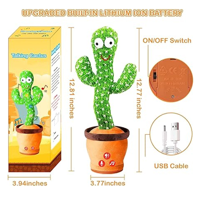 - Fun and lovely cactus plush toys, can dance, sing, move. It’s good for early education.;Cheerful music and dancing are great for creating a pleasant ambience and for parties.; Great gift, cactus plush toys are the best holiday and birthday gifts for children. Adults can also decompress.